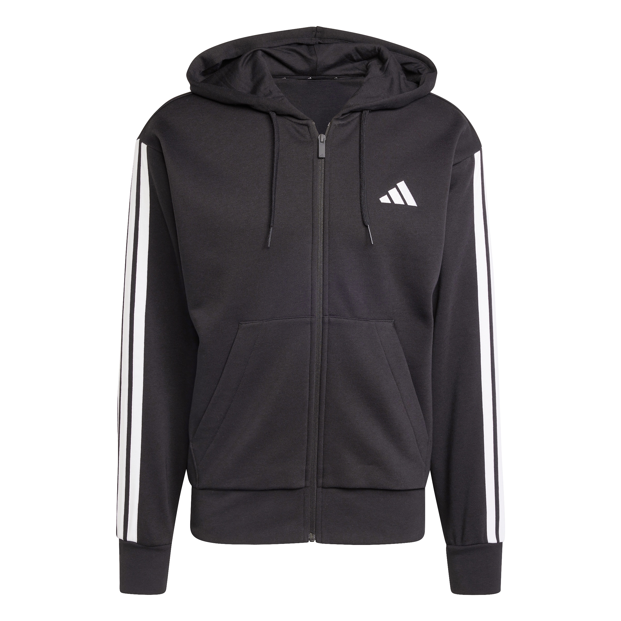 Introducing the Essential Three Stripes Fleece Hoodie, designed for men. This regular fit, hooded track top is a modern, versatile piece for an easy, everyday look. The bold execution of the three stripes and the embroidered three-bar logo add a touch of adidas authenticity. Made with recycled and renewable materials, this hoodie features an updated fit, dropped shoulder and armhole, and a new 2-piece hood construction. A perfect blend of comfort, style, and sustainability.