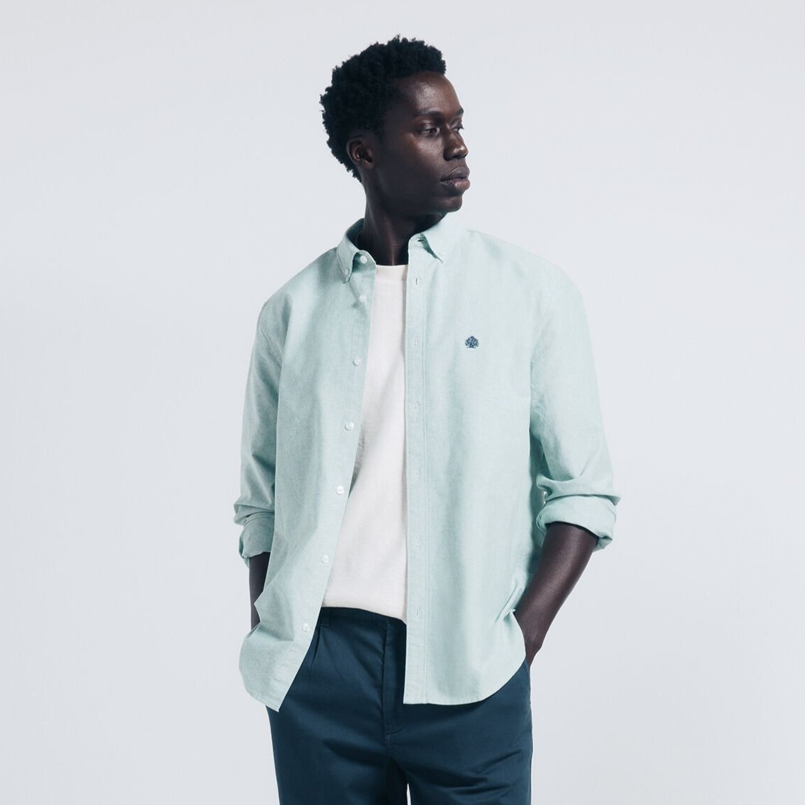 ORIGINAL OXFORD WITH TREE EMBROIDERY. 100% BCI COTTON
