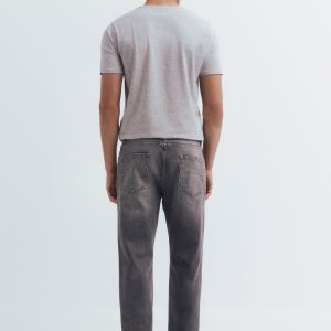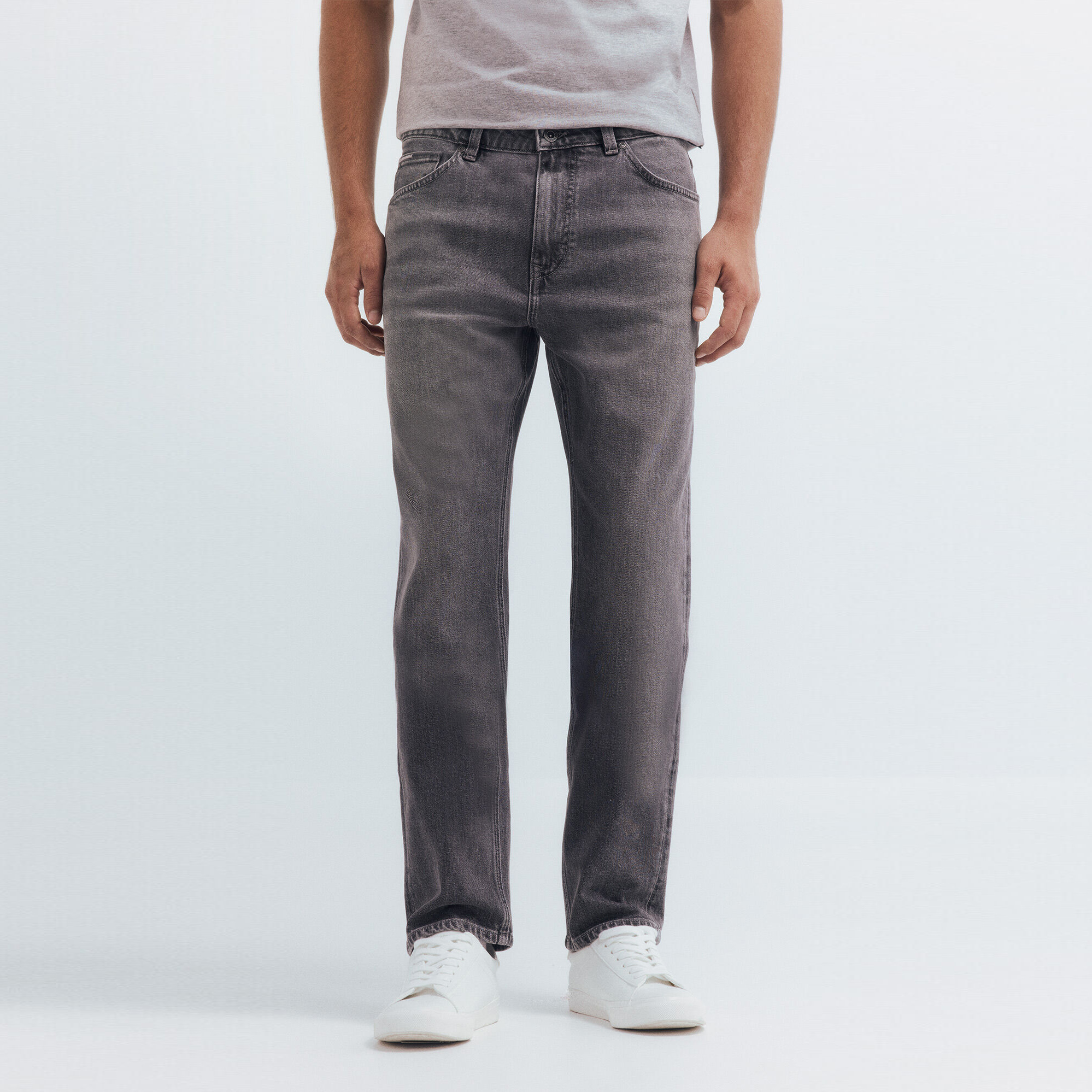 REGULAR 5 POCKETS DENIM MEDIUM DARK WITH WRINKLES ON THE FRONT.