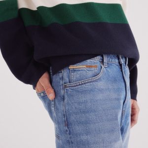 REGULAR 5 POCKETS DENIM MEDIUM WASH WITH WRINKLES ON THE FRONT.