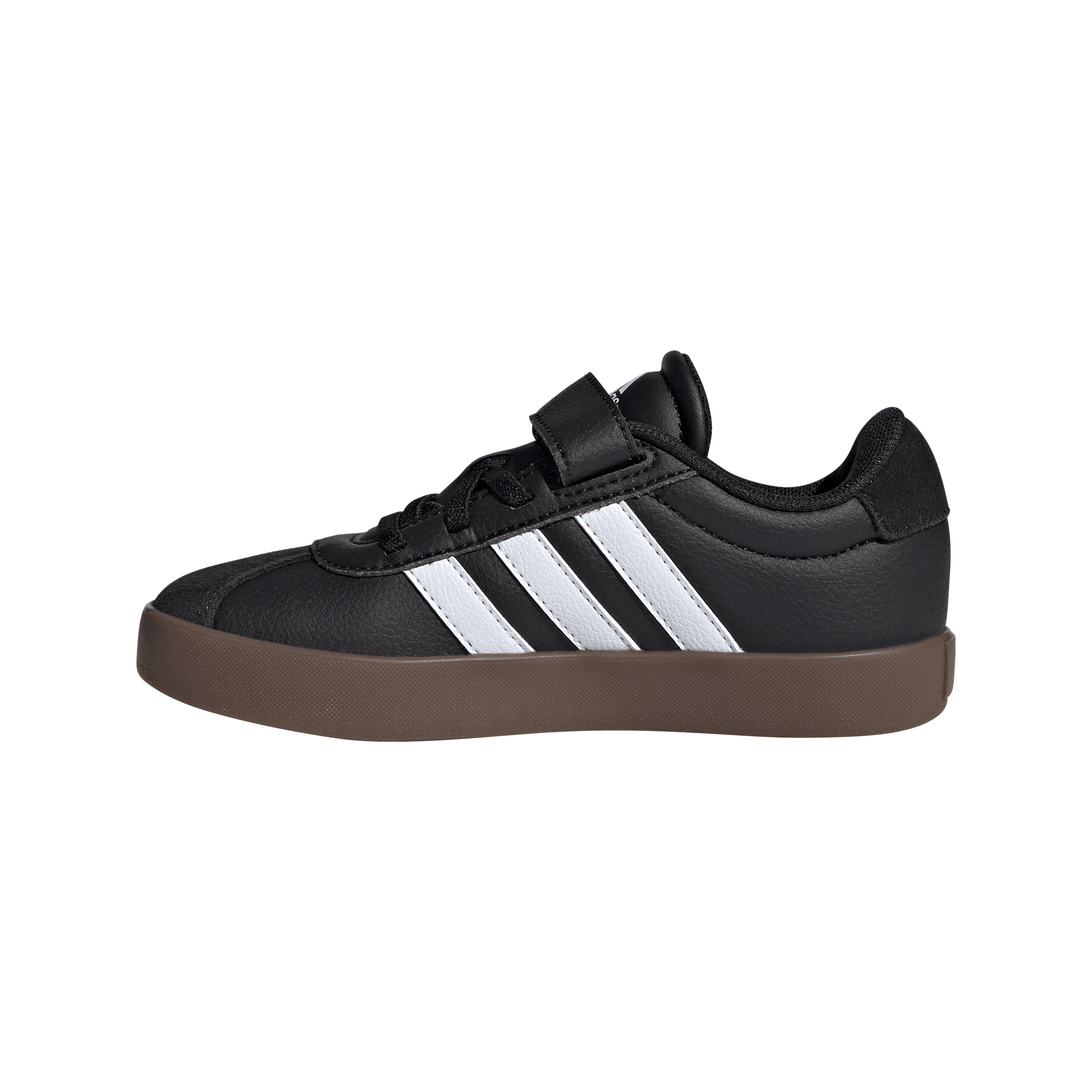 Classic and sporty, these skater-style sneakers are great for active kids. A smooth leather upper and a soft suede toe cap offer durability and style. Underneath, a rubber cupsole provides traction on any surface. When there’s no time to waste, stretchy laces simply slip on while the hook-and-loop top strap fastens at a touch.