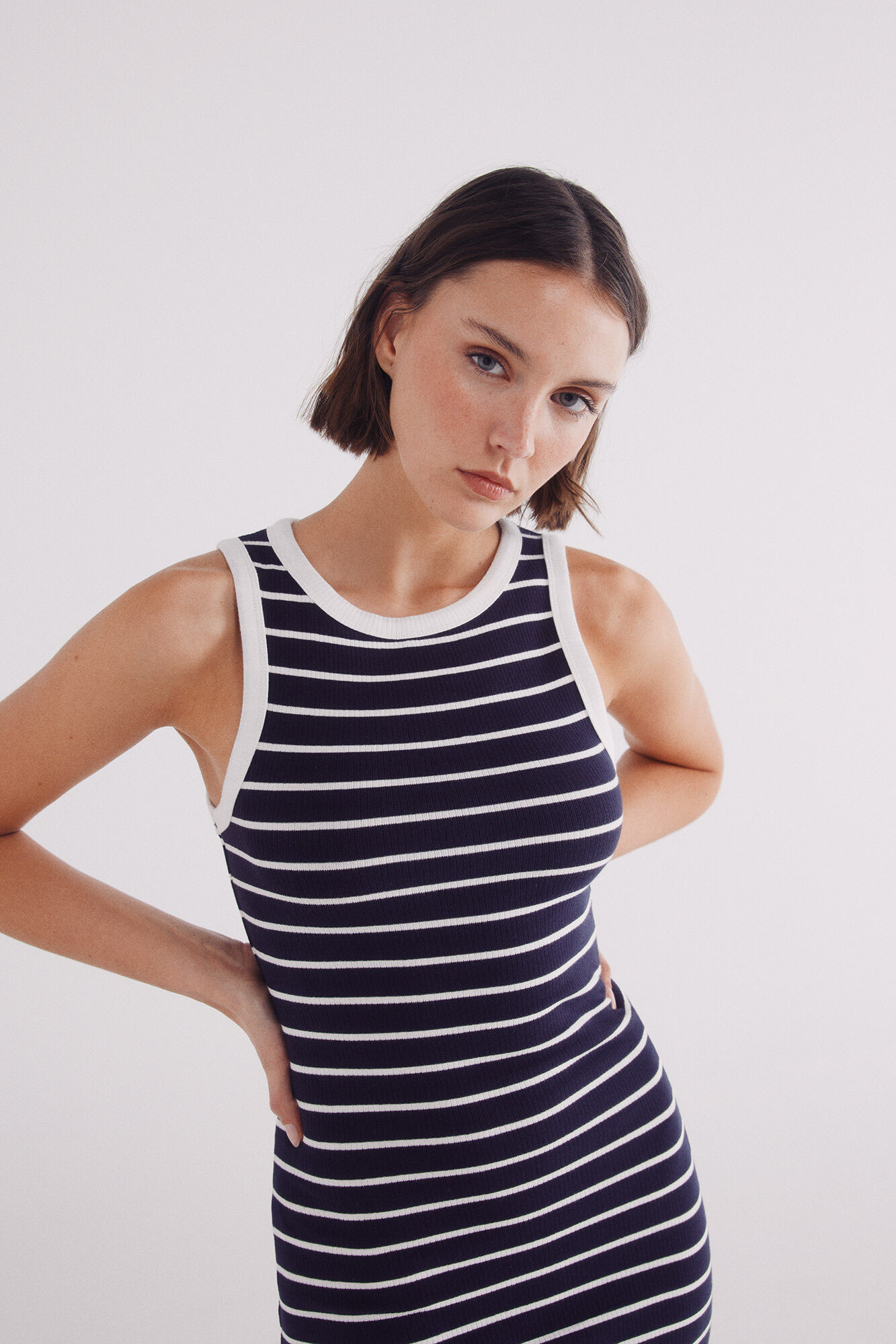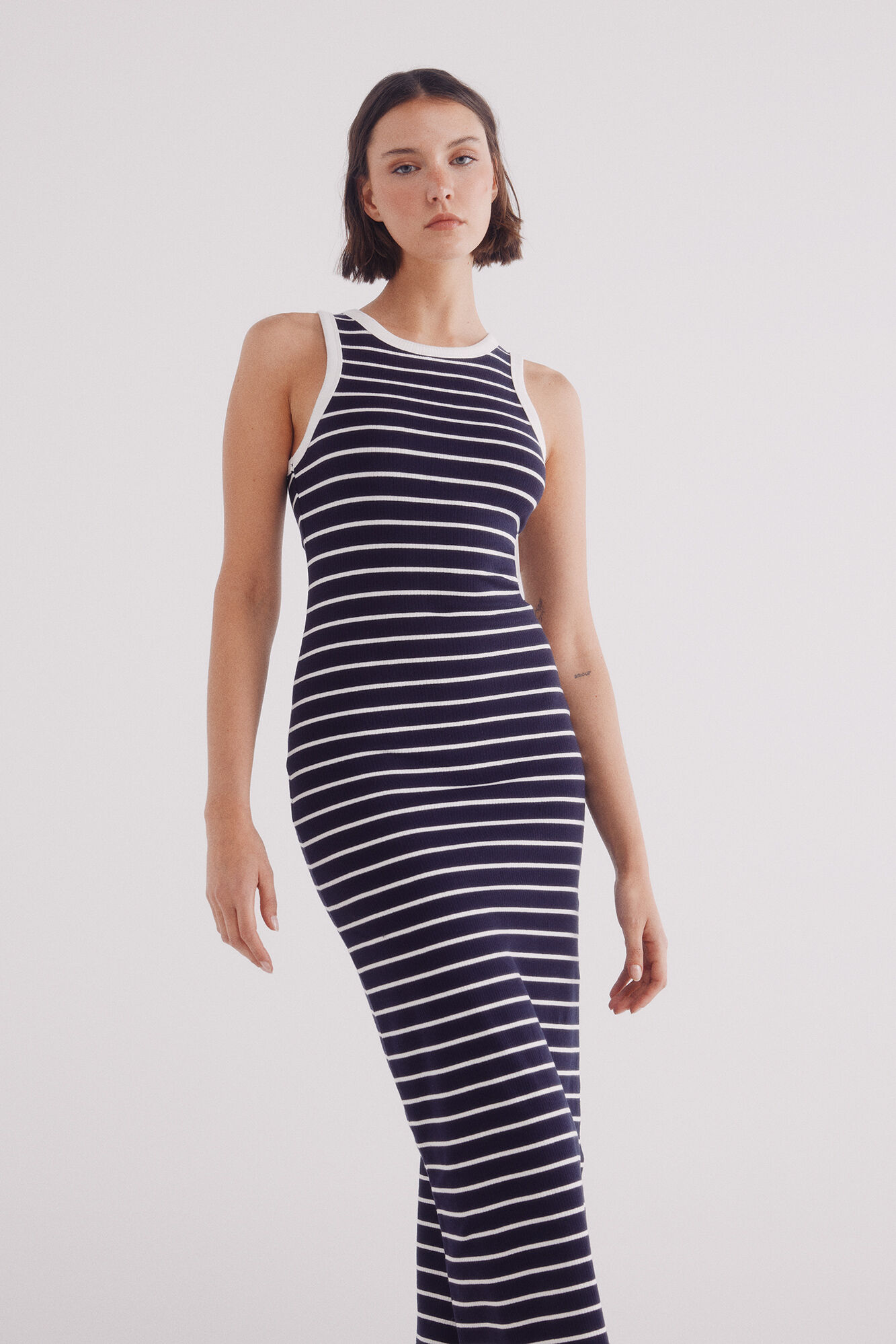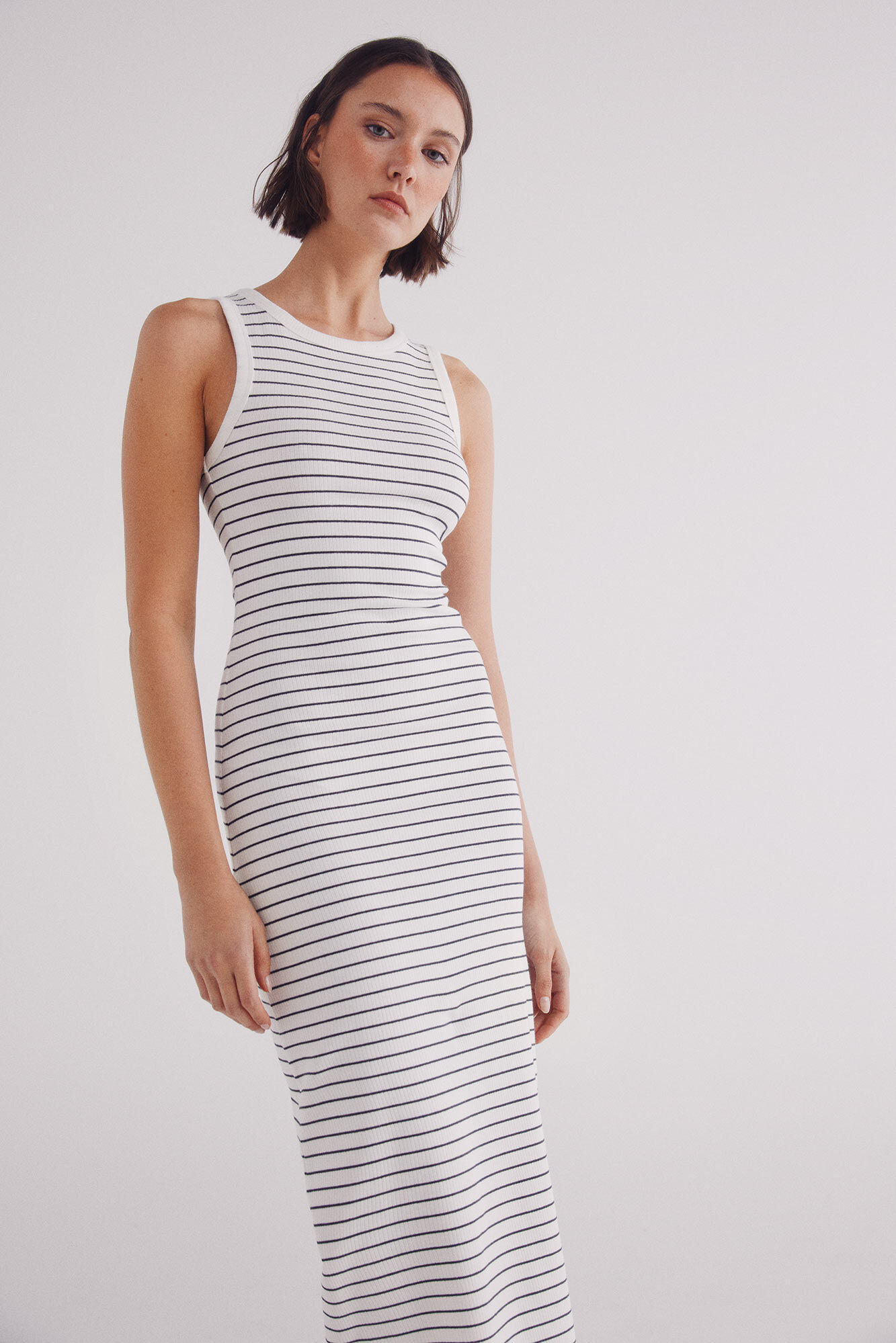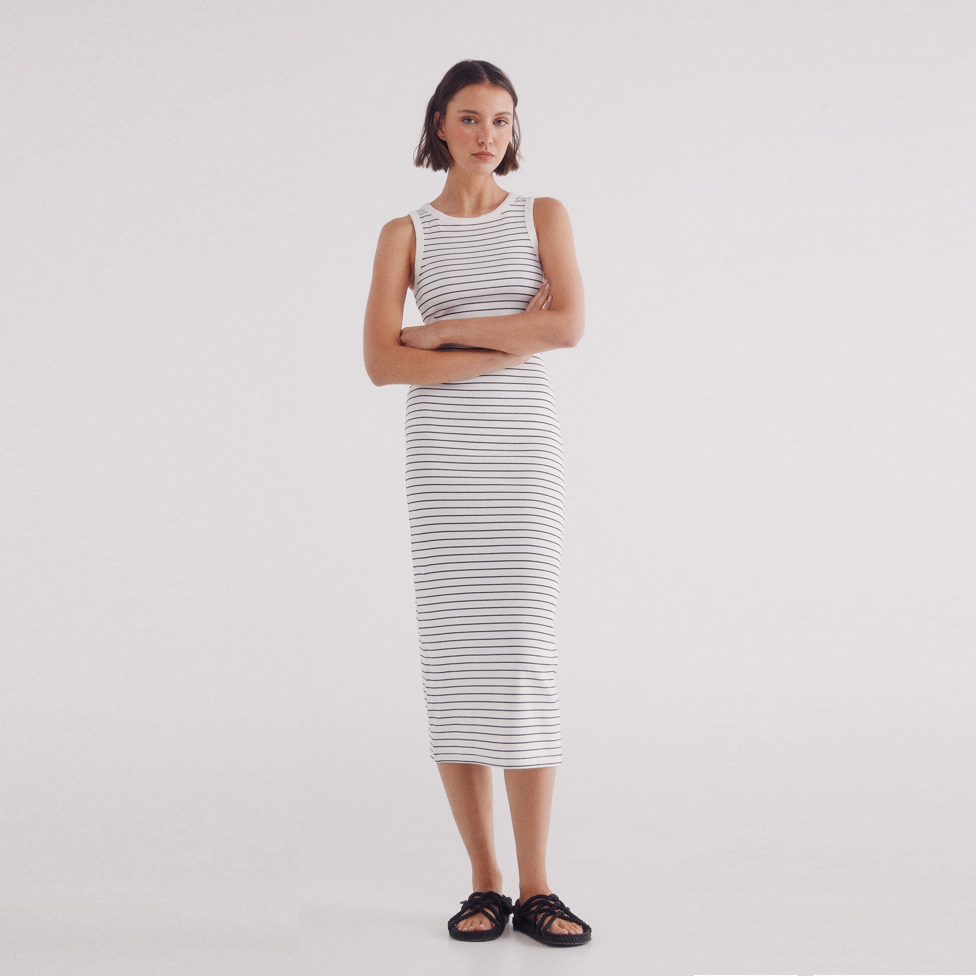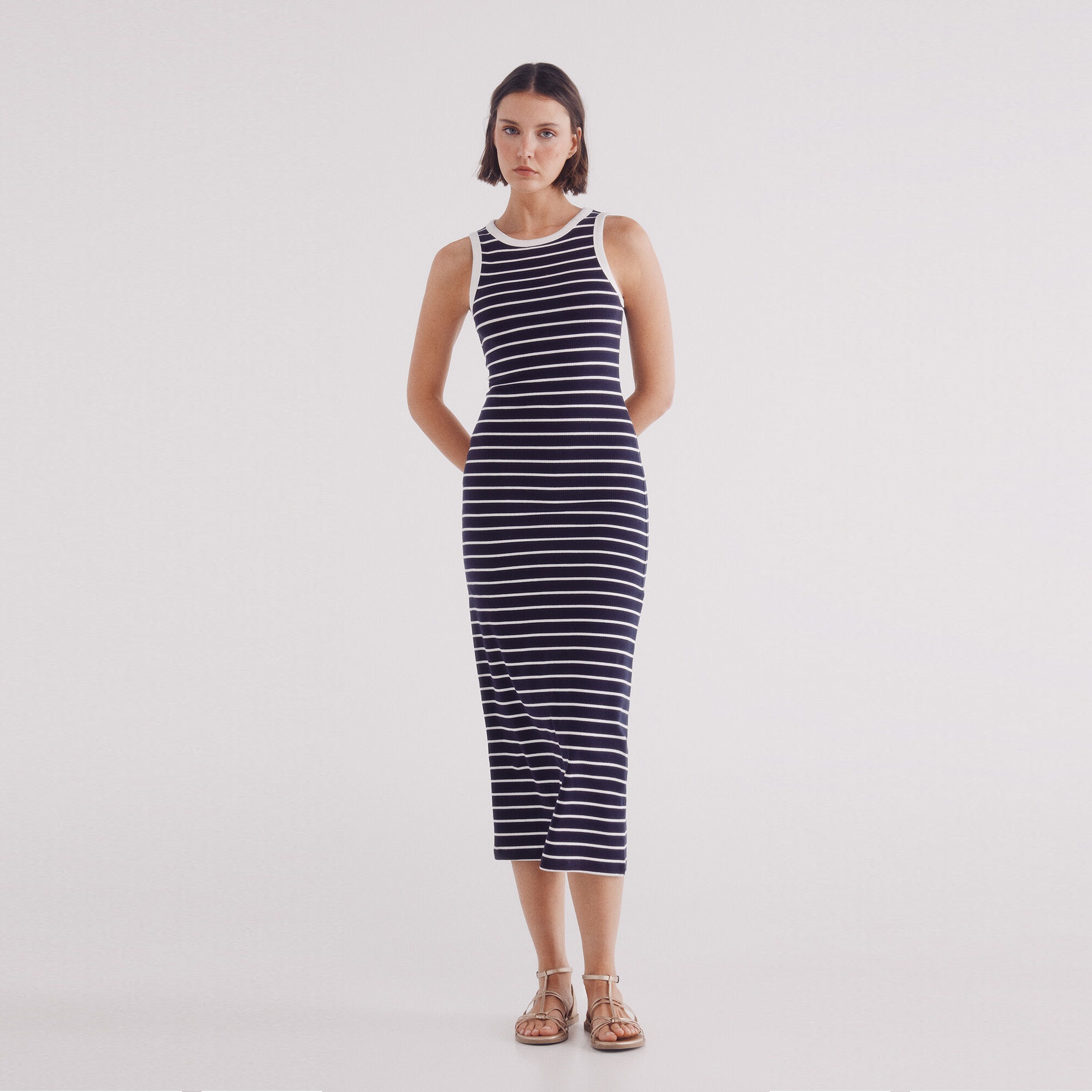 MIDI FITTED STRIPES DRESS
