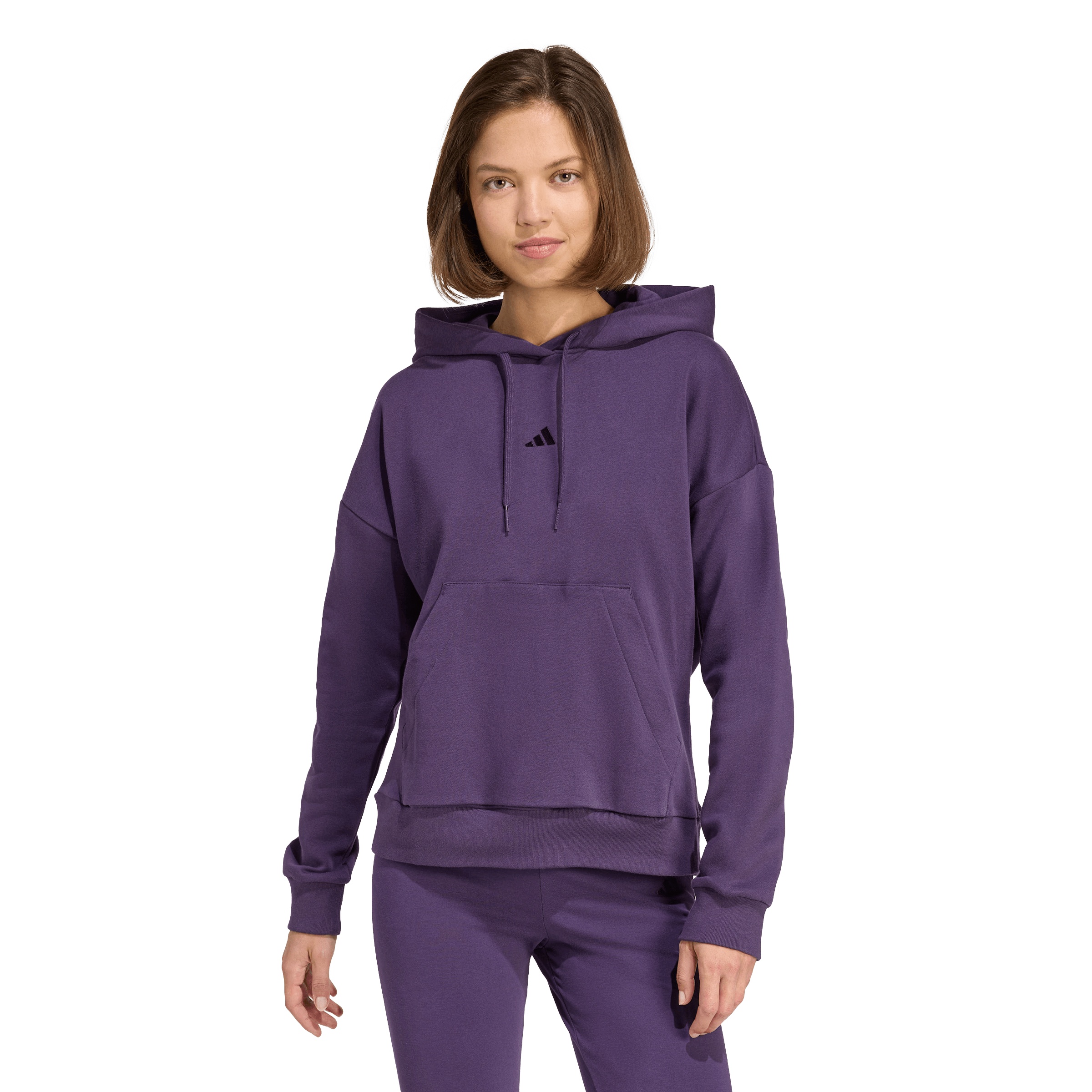 Introducing the Essentials Small Logo Feel Cozy Hoodie for women. Crafted from a sustainable blend of 70% Better Cotton and 30% recycled Polyethylene Terephthalate, this regular fit, hooded sweatshirt is a versatile staple for any wardrobe. With a large sportswear logo and cozy 240g fleece, it’s designed for comfort and style, making it a perfect match for your favourite fashion items.