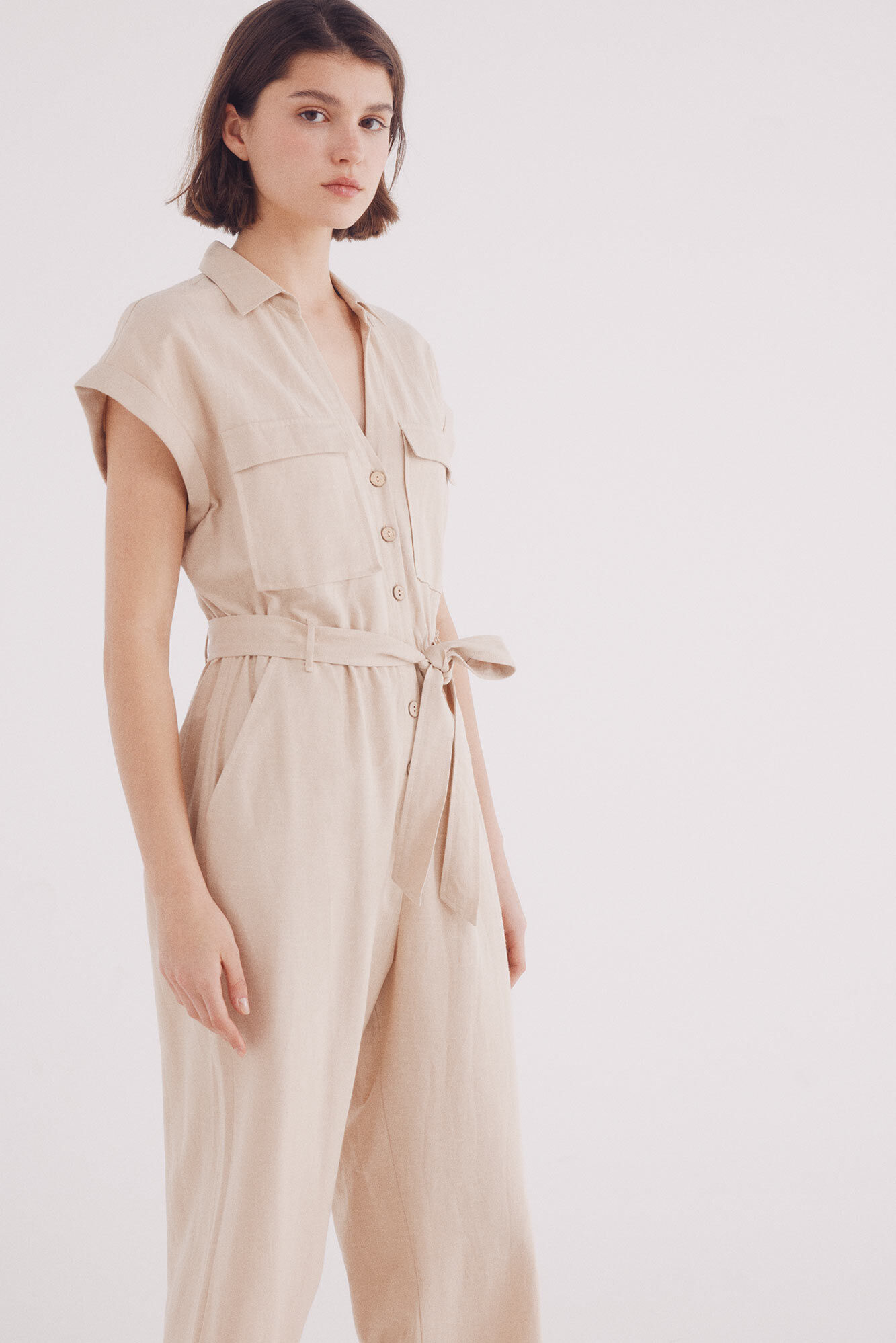 UTILITY LINEN JUMPSUIT